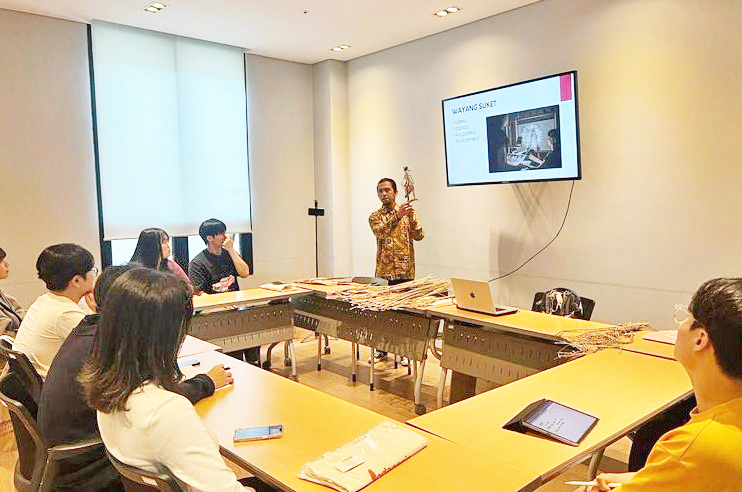 ▲부산 외국어대학교에서 와양 수켓(wayang suket)를 강의하고 있다.