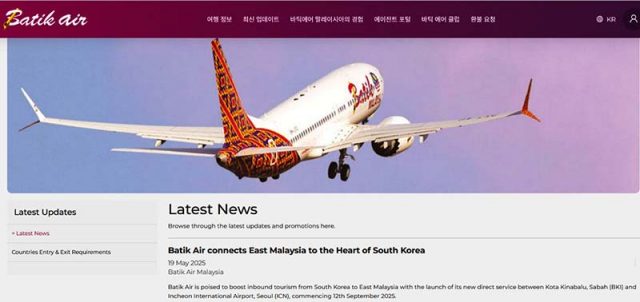 지난 5월 19일 바틱 에어의 기업 커뮤니케이션 담당자는 “2025년 9월 12일부터 바틱 에어는 코타키나발루에서 인천까지 주 3회 항공편을 운영할 예정”이라고 밝혔다.