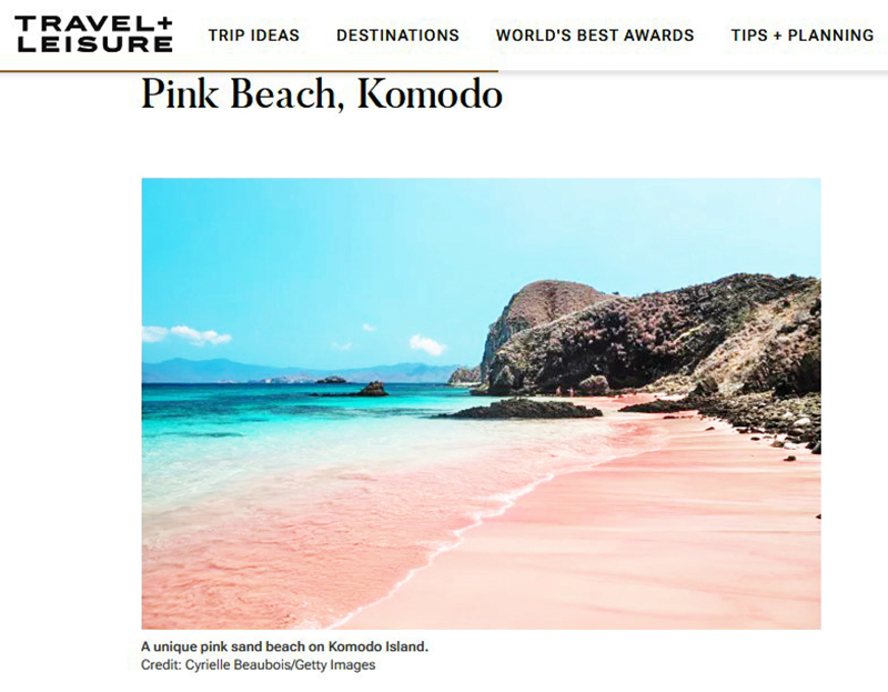 코모도 국립공원의 핑크 비치(Pink Beach) 역시 목록에서 빠지지 않았다. 붉은 산호 조각이 하얀 모래와 섞여 신비로운 분홍빛을 자아내는 이곳은 보트로만 접근이 가능하다.