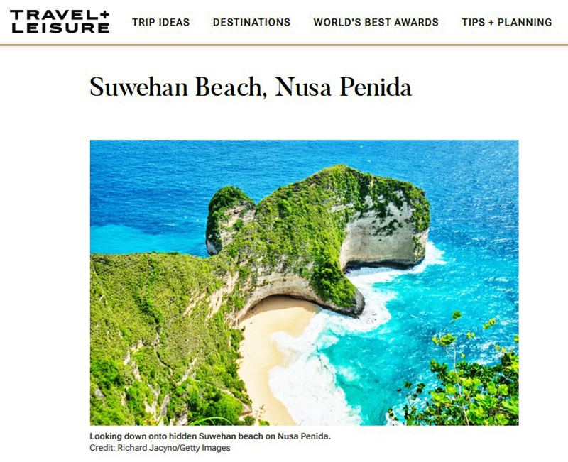 발리 권역에서는 유일하게 *누사 페니다 섬의 수웨한 해변(Suwehan Beach)이 선정되었다. 발리 본섬에서 배로 이동해야 하는 이곳은 해변 중앙에 솟은 원뿔 모양의 거대한 기암괴석과 녹색 절벽이 어우러져 압도적인 풍광을 자랑한다. 특히 썰물 때 그 장관이 극대화된다고 전해졌다.