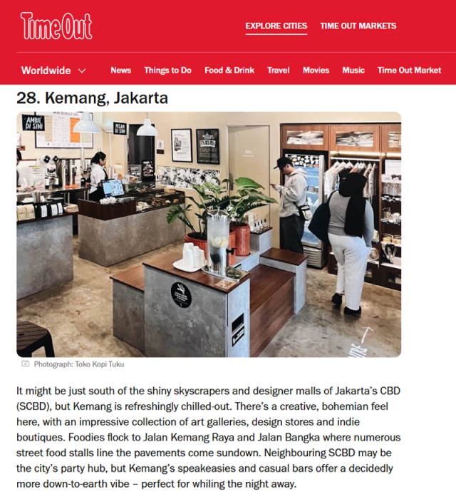 남부 자카르타에 위치한 끄망(Kemang) 지구가 세계적인 라이프스타일 매거진 ‘타임 아웃(Time Out)’이 선정한 ‘2025년 세계에서 가장 멋진 동네 30선(30 Coolest Neighborhoods in the World)’에 이름을 올리며, 인도네시아의 문화적 위상을 다시 한번 입증했다.