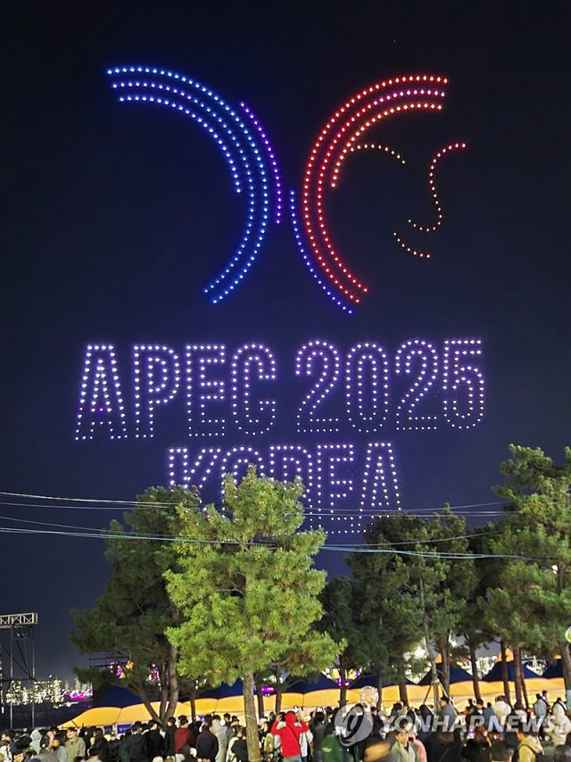 (포항=연합뉴스) 29일 오후 경북 포항시 영일대해수욕장에서 2025 아시아태평양경제협력체(APEC)의 성공개최 등을 염원하고, 영일만항 크루즈에 머무르는 APEC CEO 서밋 참가자들에게 포항을 알리기 위한 불꽃 & 드론쇼가 펼쳐지고 있다. 2025.10.29. [포항시청 제공.재판매 및 DB 금지]