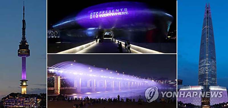 BTS 데뷔 10주년 기념, 보랏빛으로 물든 서울의 명소들
