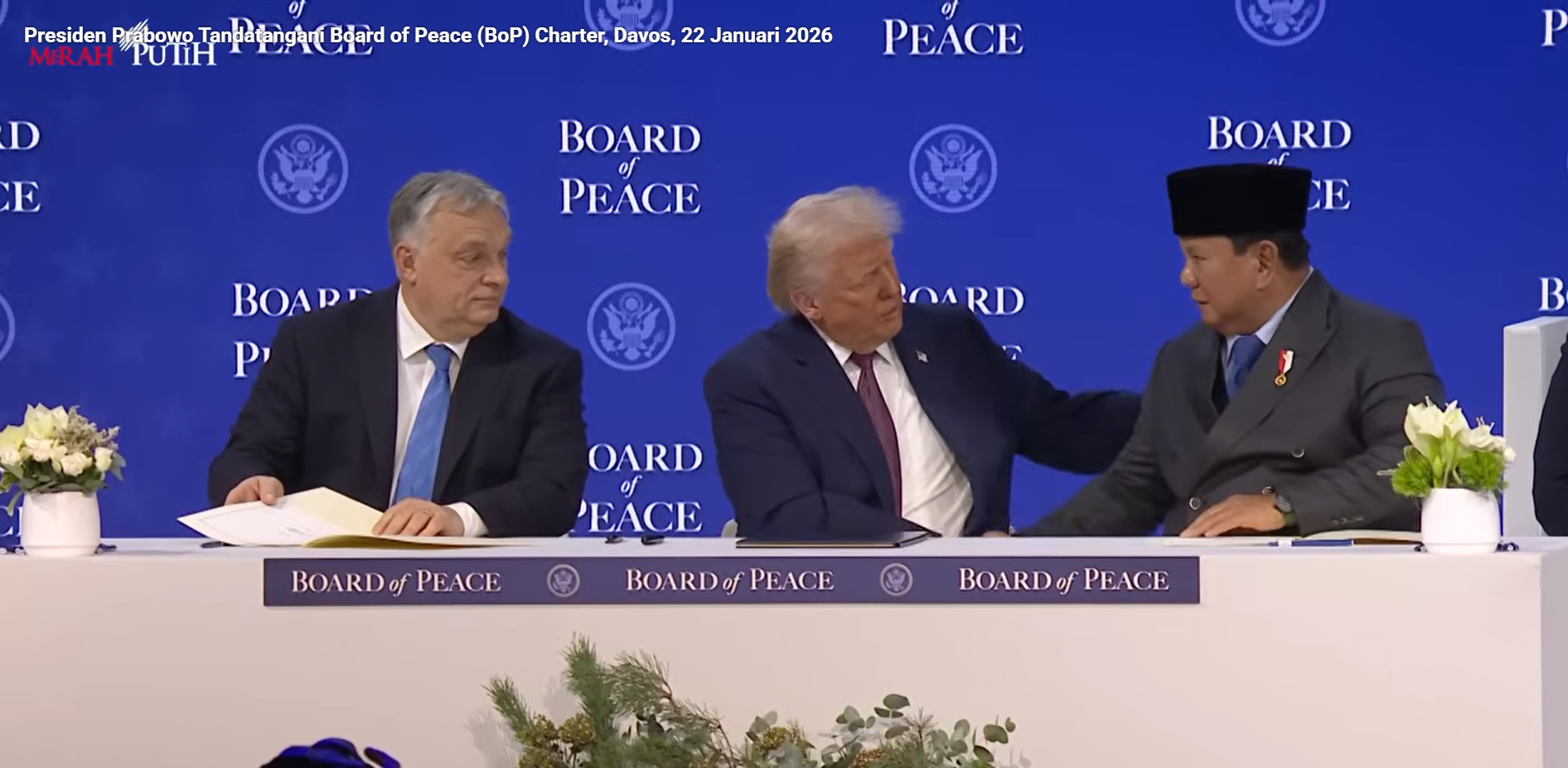 트럼프 대통령이 지난 22일 스위스 다보스포럼에서 개최한 평화위원회 서명식 출범 행사에는 미국과 아르메니아·아르헨티나·아제르바이잔·바레인·불가리아·헝가리·인도네시아·요르단·카자흐스탄·몽골·모로코·파키스탄·파라과이·카타르·사우디아라비아·튀르키예·아랍에미리트(UAE)·우즈베키스탄 등 19개국 외에 국제사회에서 아직 국가로 승인받지 못한 코소보가 서명했다고 러시아 타스통신은 전했다.