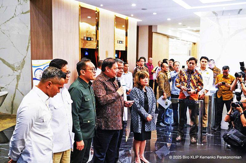 미 관세협상 결과를 설명하는 아일랑가 하르타르토 경제조정부 장관. 2025.7.22