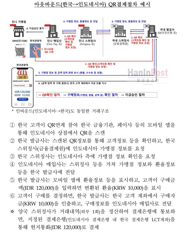 한편, 금융권 관계자는 “인도네시아는 아세안 최대 경제 대국이자 한국 관광객이 많이 찾는 국가인 만큼 이번 조치가 실제 체감되는 편의성 증진 효과가 클 것”이라며 “시중은행과 핀테크 기업들도 관련 서비스 개발에 속도를 낼 것으로 보인다”고 전망했다. (경제부/ 편집부 종합)