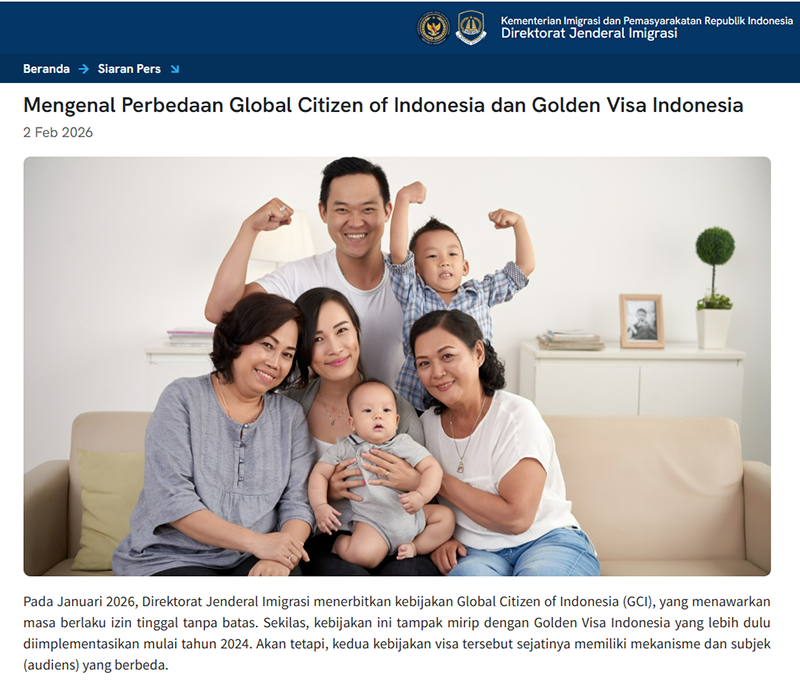 2026년 1월부터 발급이 시작된 GCI는 인도네시아 디아스포라(재외동포)와 국가적 유대를 강화하는 데 중점을 둔 정책이다. 율디 총국장은 “GCI는 전(前) 인도네시아 국민(WNI)과 그 가족, 그리고 디아스포라가 고국인 인도네시아에 다시 정착하여 국가 발전에 기여할 수 있는 경로를 제공하기 위해 설계됐다”고 설명했다.
