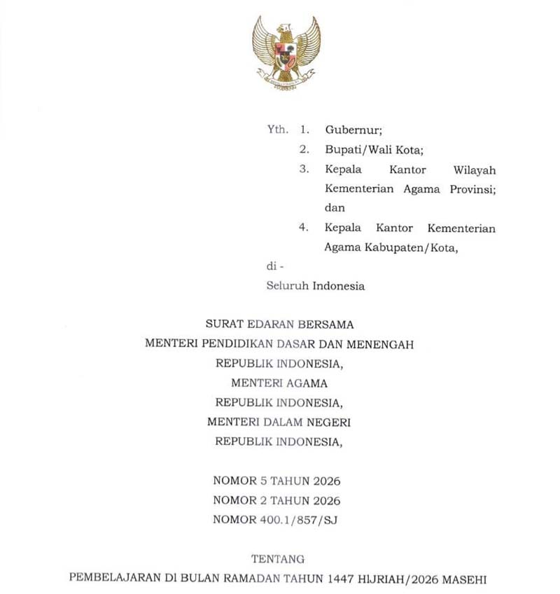 나흐디아나(Nahdiana) DKI 자카르타 교육청장은 지난 19일 시청에서 열린 브리핑을 통해 히즈라력 1447년(서기 2026년) 라마단 기간 동안의 교육 및 학습 활동 조정 방안을 발표했다.