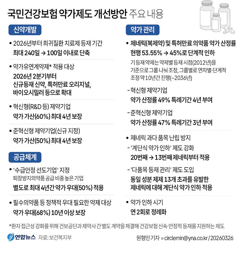보건복지부는 26일 2026년 제6차 건강보험정책심의위원회를 열어 '국민건강보험 약가제도 개선방안'을 심의·의결했다.