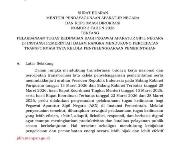 – 정책 내용: 공무원(ASN) 대상 매주 금요일 재택근무(WFH) 공식 시행